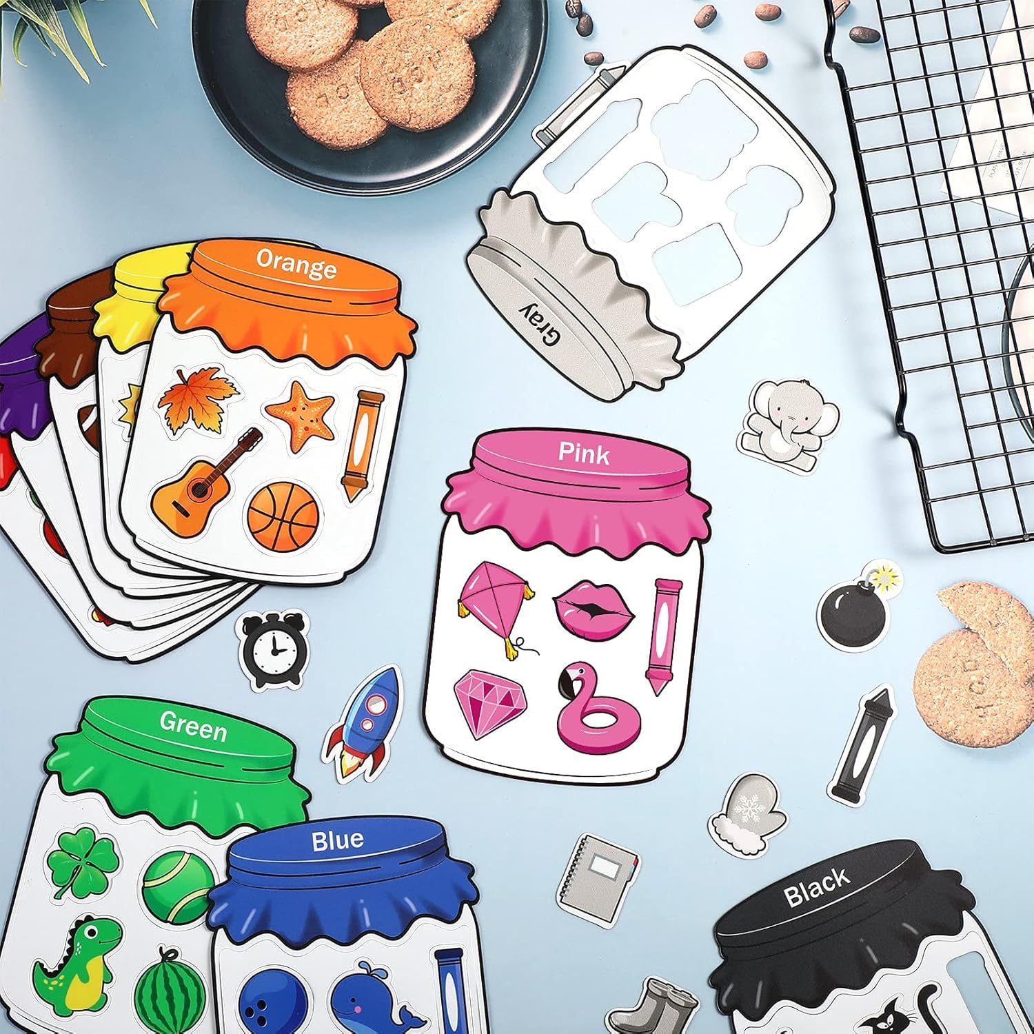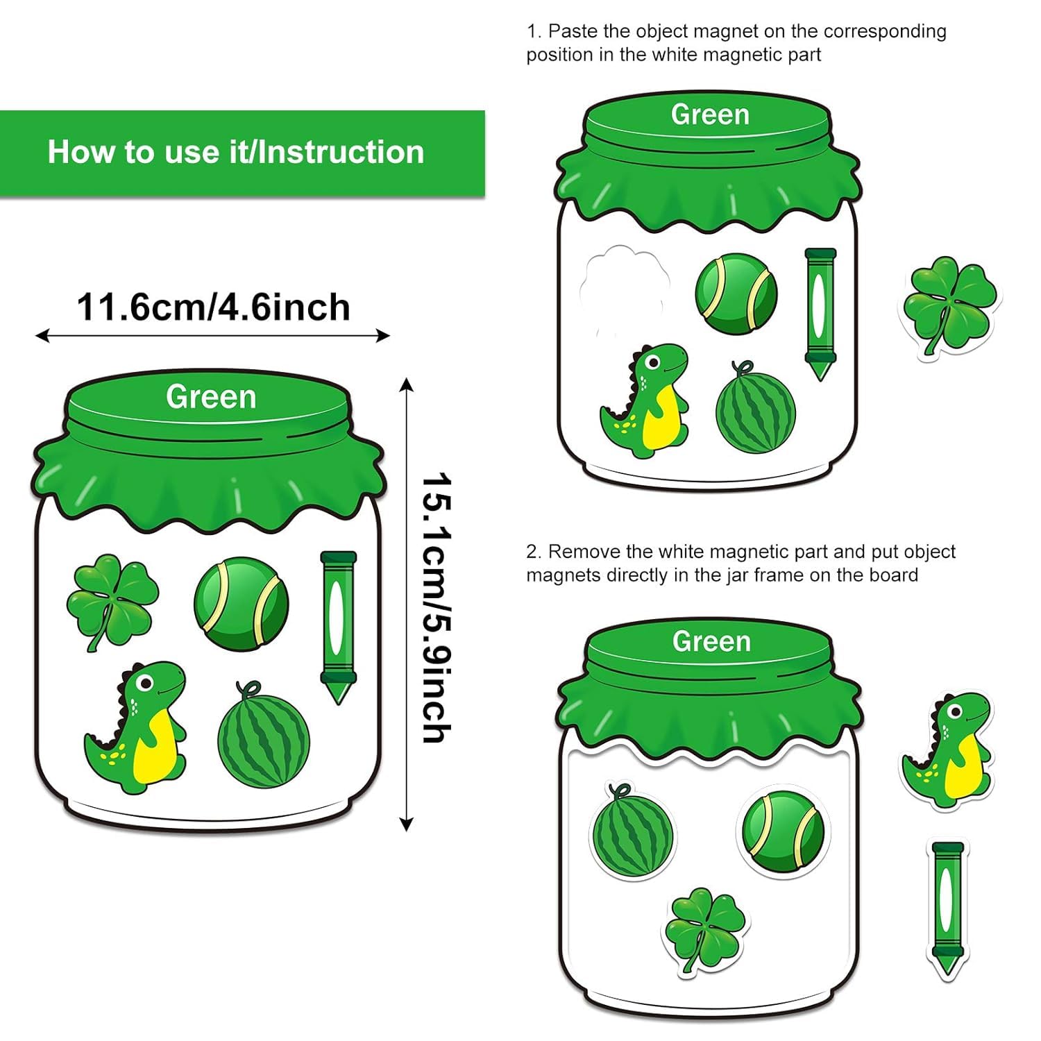 ✅ 10 Magnetic Color Jars: Includes red, green, blue, yellow, orange, brown, pink, purple, black, and gray — helping kids learn colors through association.